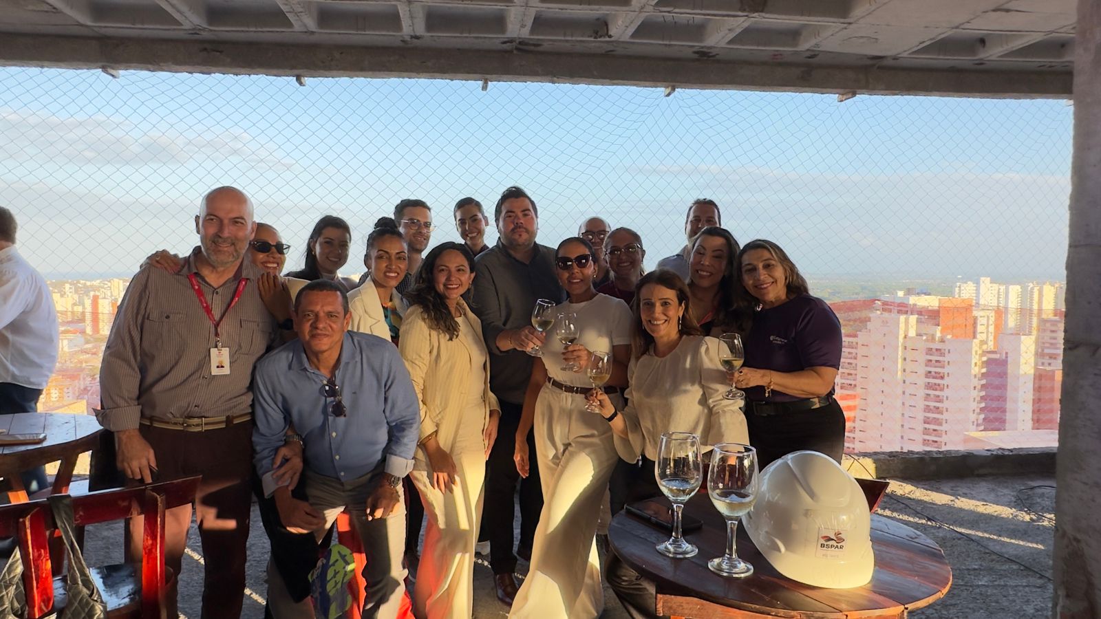 A BSPAR promoveu esta semana uma série de visitas as obras do BS Gold que estão em pleno vapor. Durante três dias, e em grupos diferentes, representantes de imobiliárias e corretores autônomos tiveram a oportunidade de acompanhar, ao som de um saxofonista, o pôr do sol do 27º andar do empreendimento que oferece uma vista privilegiada de Fortaleza. O empreendimento residencial BS Gold, em construção pela BSPAR na Quadra BS, foi eleito o Melhor Projeto Arquitetônico pelo Sinduscon Ceará, durante o Prêmio da Construção 2025, realizado no Teatro RioMar Fortaleza. A premiação reconheceu não apenas a estética do edifício, mas a proposta arquitetônica que valoriza a cidade, alinhada ao conceito urbanístico idealizado para a Quadra BS.